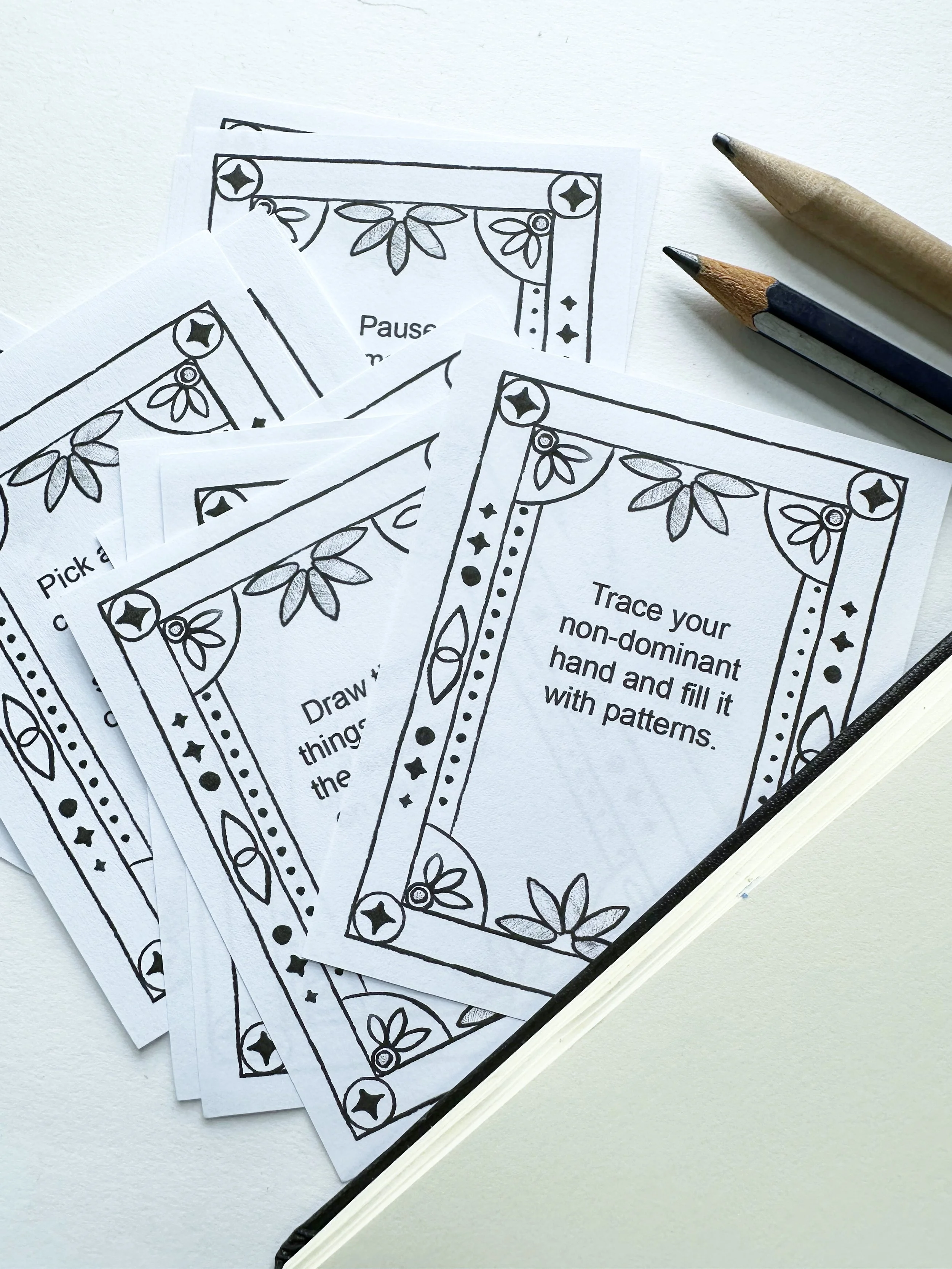 Subscribe to download a set of illustrated “playing cards” designed to take the decision-making out of your creative practice.
